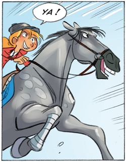 Mais cet album a aussi l’air d’être pas mal du tout… Je ne suis pourtant pas une fanatique des chevaux : le 1er que j’ai monté s’appelait Risque Tout (déjà, rien que le nom, j’avais peurrrr), et il allait n’importe où, sauf là où je voulais !!