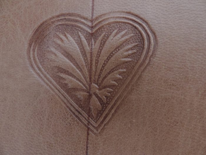 Derrière il y a un cœur bien joli ! Mais le défaut des choses faites à la main est qu’elles sont parfois moins régulières que les autres choses. Ici, le cœur n’est pas bien centré par rapport au trait vertical… 😀