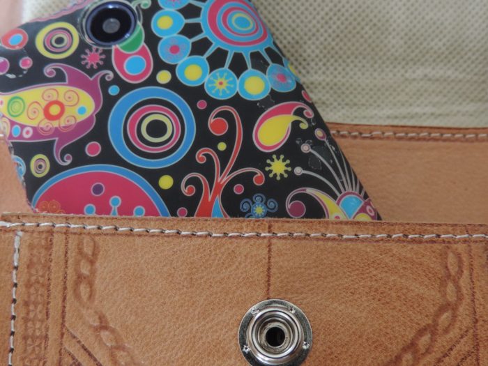 La petite poche de devant peu contenir certaines choses (ces cartes, des clés…) mais pas un téléphone ! Sauf si il est tout petit ! 😀 😀 😀
