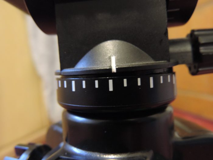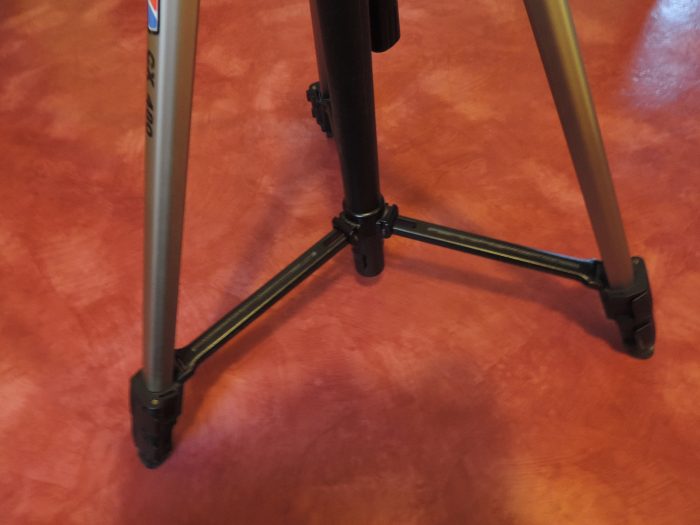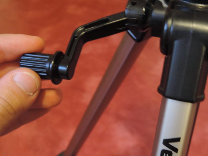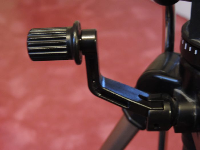 Le pied a un moulinet qui permet de régler la hauteur de la caméra (ou de l’appareil photo) sans toucher aux trois pieds.