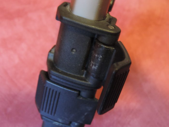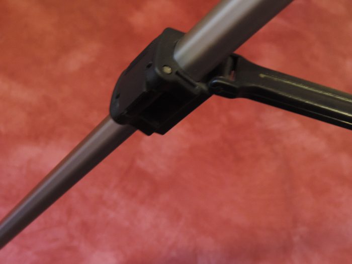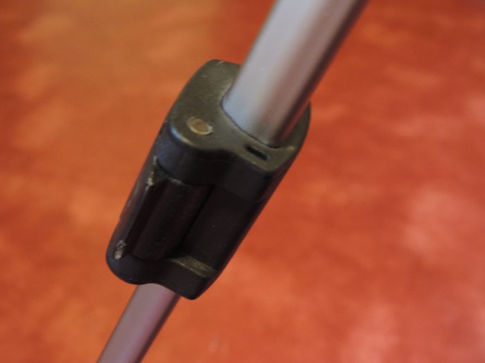 Au bout de chacun de ces trois pieds, il y a ça. Ces trucs se clipsent pour coincer les barres grises (qui soutiennent le tout) et se déclipsent pour régler comme on veut.