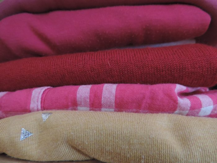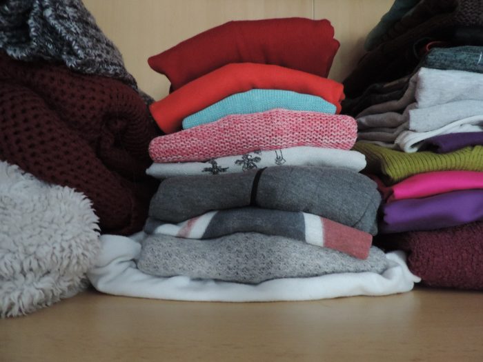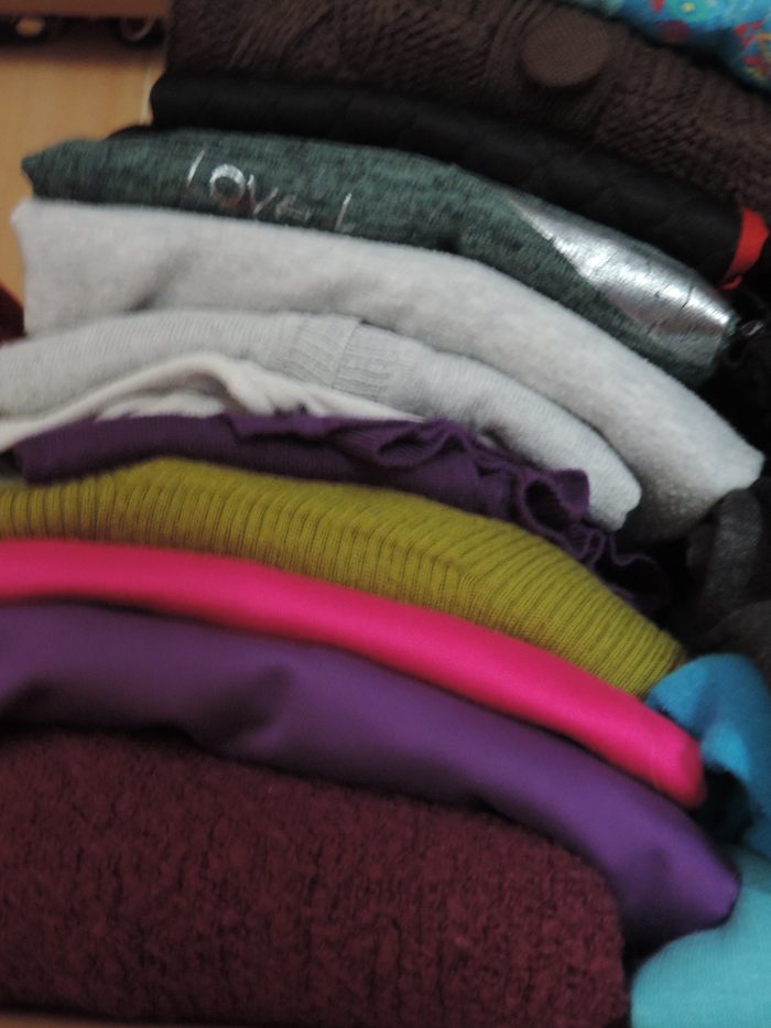 Ensuite, à gauche, il y a des pulls de tous les jours, que je peux mettre par dessus un t-shirt, mais qui ne sont pas très chauds.