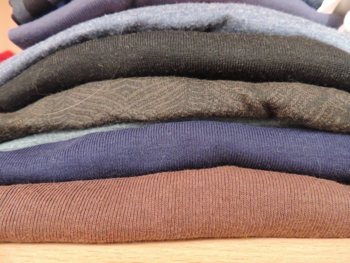 Ensuite, il y a mes sous-t-shirt (je ne me rappelle plus du mot exact), je les mets en dessous de mes t-shirt (quand je dis t-shirt, je veux dire t-shirt à manches longues, mais c’est logique en hiver) pour avoir plus chaud. C’est pour ça qu’ils sont tous très simples. D’ailleurs, je n’aime pas porter une autre matière que le coton à même la peau, c’est horrible, je trouve !