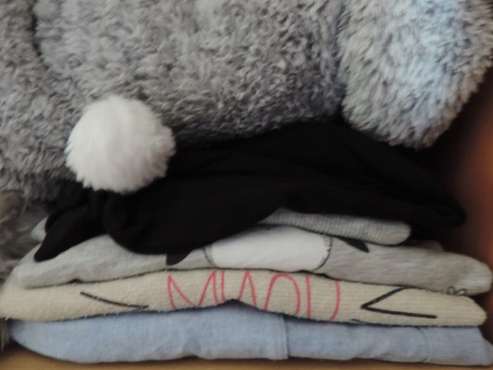 A droite encore, il y a mes pyjamas. Je crois que je ne vous ai jamais dit que j’adoooOOOOooore les pyjamas, je trouve que c’est toujours trop mignon et trop confortable ! 😀