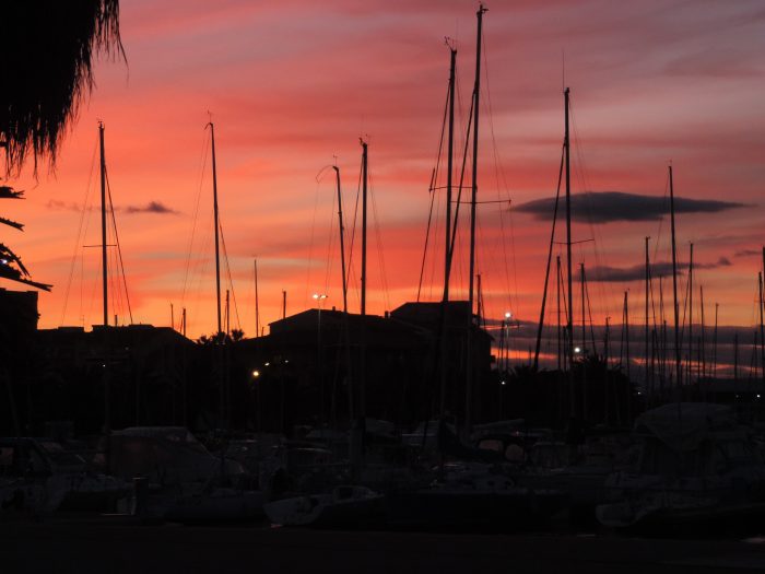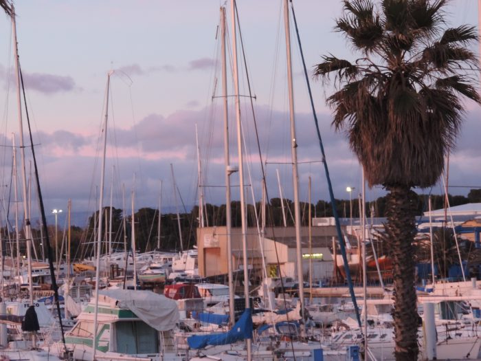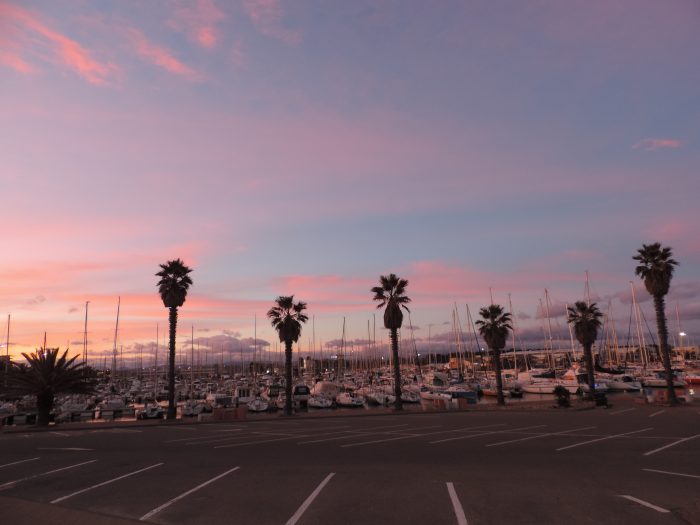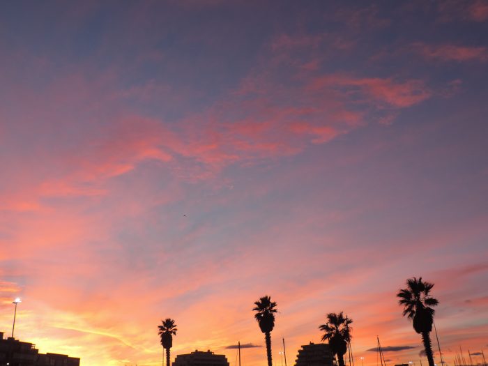 Ah… Cette image, enfin, cette photographie ! 😛 Je trouve que c’est trop beau, c’est moi qui l’ai prise ! On voit le haut des palmiers et le bout des trucs des bateaux… Il y a un port dans cette ville ! 😀