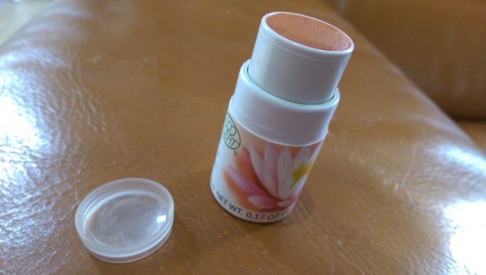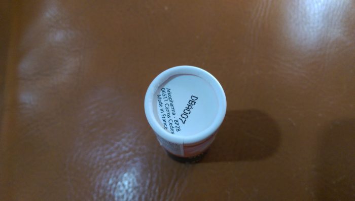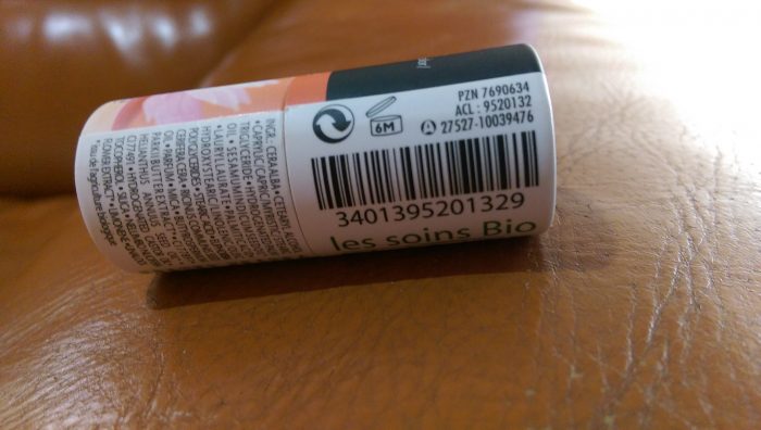 Je trouve que c’est dommage que ça ne fasse pas comme le baume à lèvres de chez Laino : le bout n’est pas triangulaire. Il est même extrêmement plat, c’est donc plus difficile de l’appliquer sans en mettre par tout ! Mais avec un peu d’entraînement… 😀