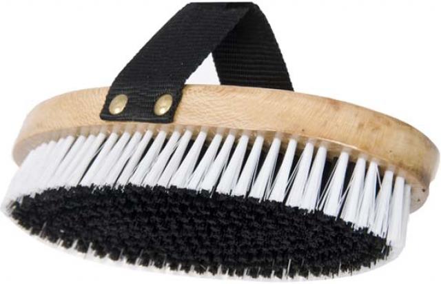 Je ne suis pas trop d’accord, ils ont oublié la brosse douce, elle sert à dépoussiéré le cheval, elle se passe après la brosse dure :