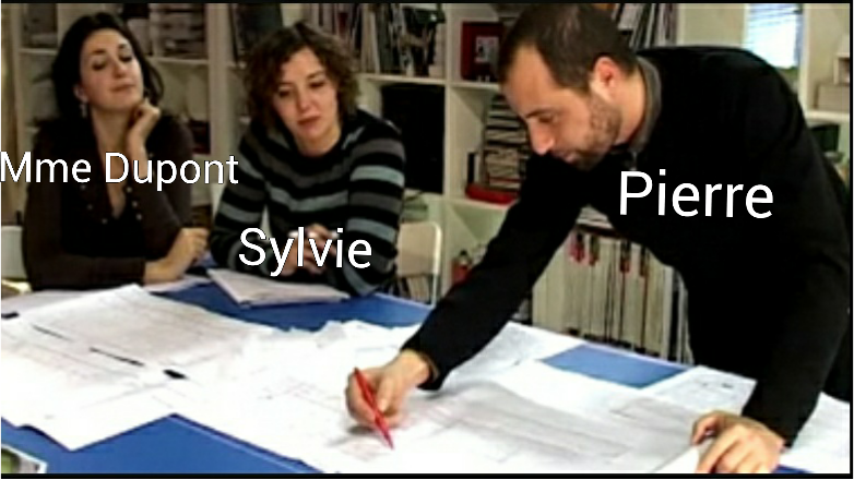 Les clients et l’architecte se retrouvèrent chez eux et discutèrent de leur projet. Mme Dupont leur expliqua qu’ils ont fait n’importe quoi avec leur plan, ce qui les fit bien rigoler.