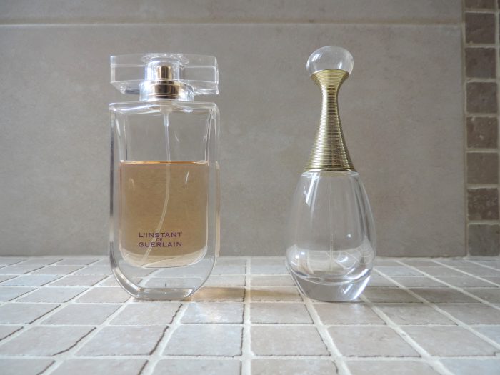 Vous pouvez aussi exposer vos flacons de parfums,je trouve qu’ils peuvent donner une touche un peu « glam » à un intérieur !! 😛 🙂 D’ailleurs, vous pouvez exposer des flacons pleins (comme celui de gauche) ou des flacons vides (comme celui de droite) !! Par contre, je ne vous conseille pas d’exposer vos parfum si le verre du flacon est teinté, je trouve que cela donner un effet chip à l’affaire, donc pas de Petite robe noire ni de Nina et Luna L’Eau.